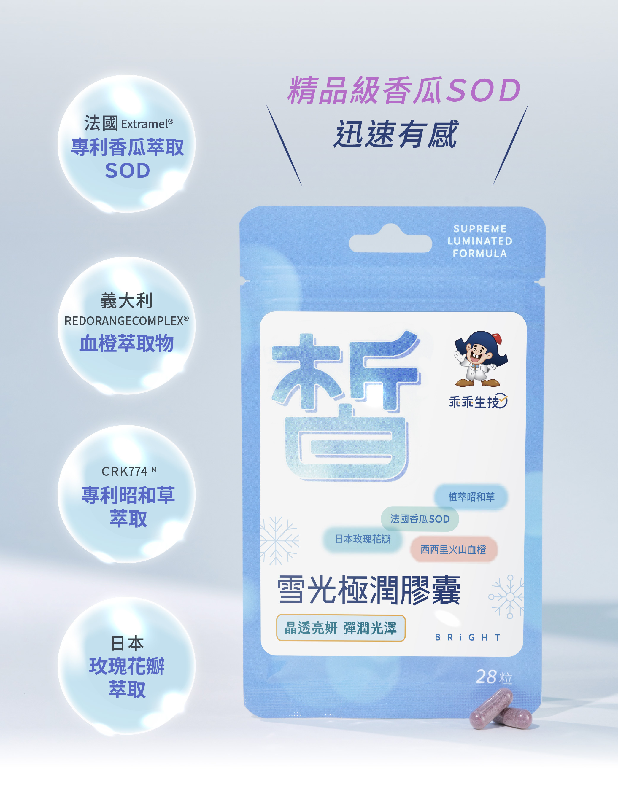在研發 雪光極潤膠囊 時,我的目標是讓大家以最平實的價格,享受到世界級的亮透美顏成分。我們不只看成分名,更看重「活性來源」與「素食兼容性」,這就是為什麼許多客戶回饋兩週後就有明顯的透亮感。