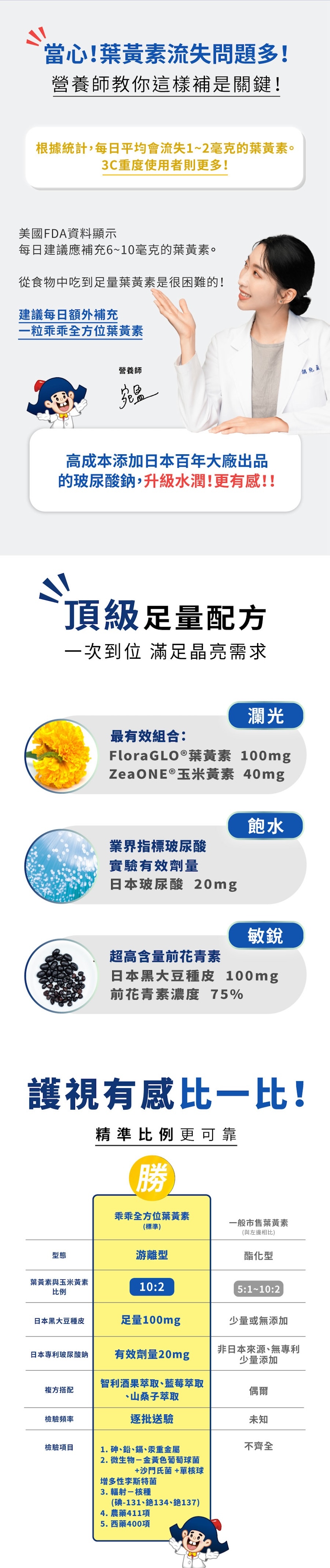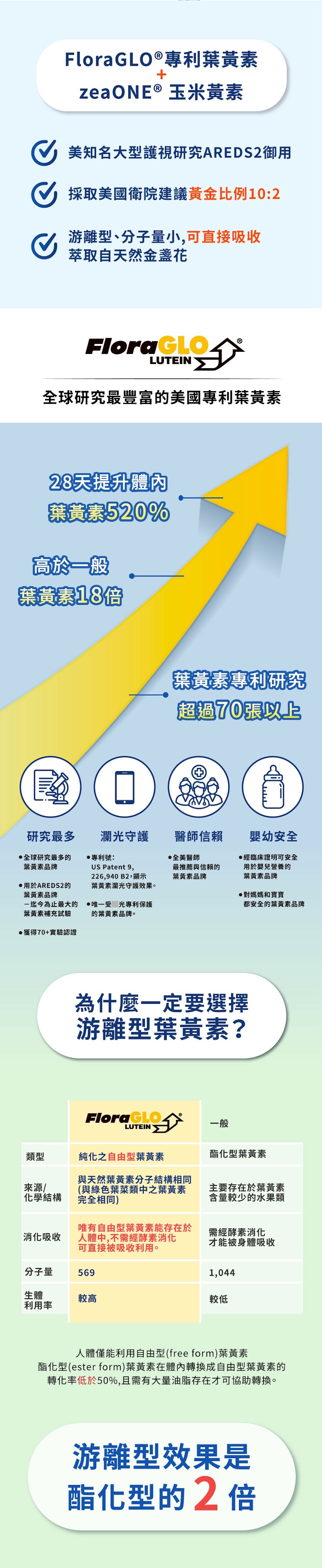 ▪️專利⎮ 專利金盞花萃取:FloraGLO®專利葉黃素 + zeaONE® 玉米黃素