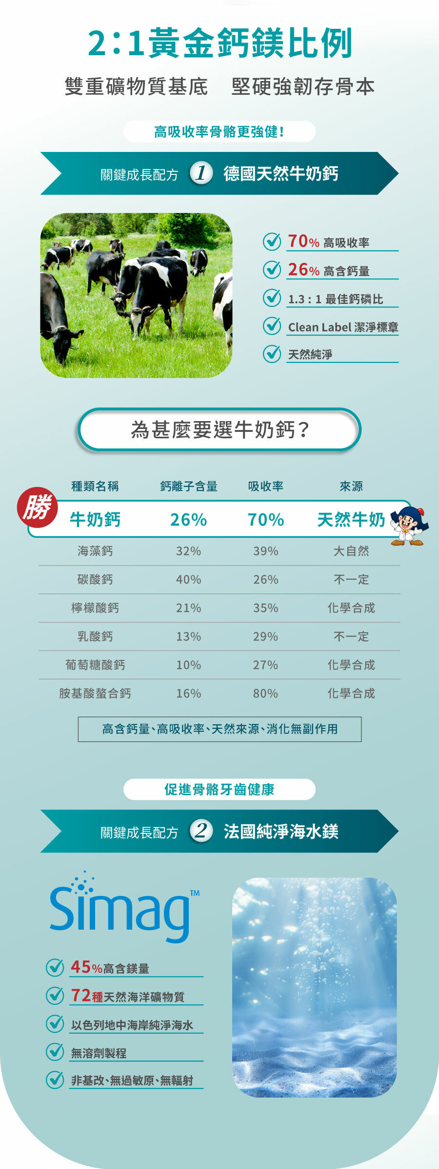 ▪️比例⎮ 2:1黃金鈣鎂比例,堅硬強韌存骨本