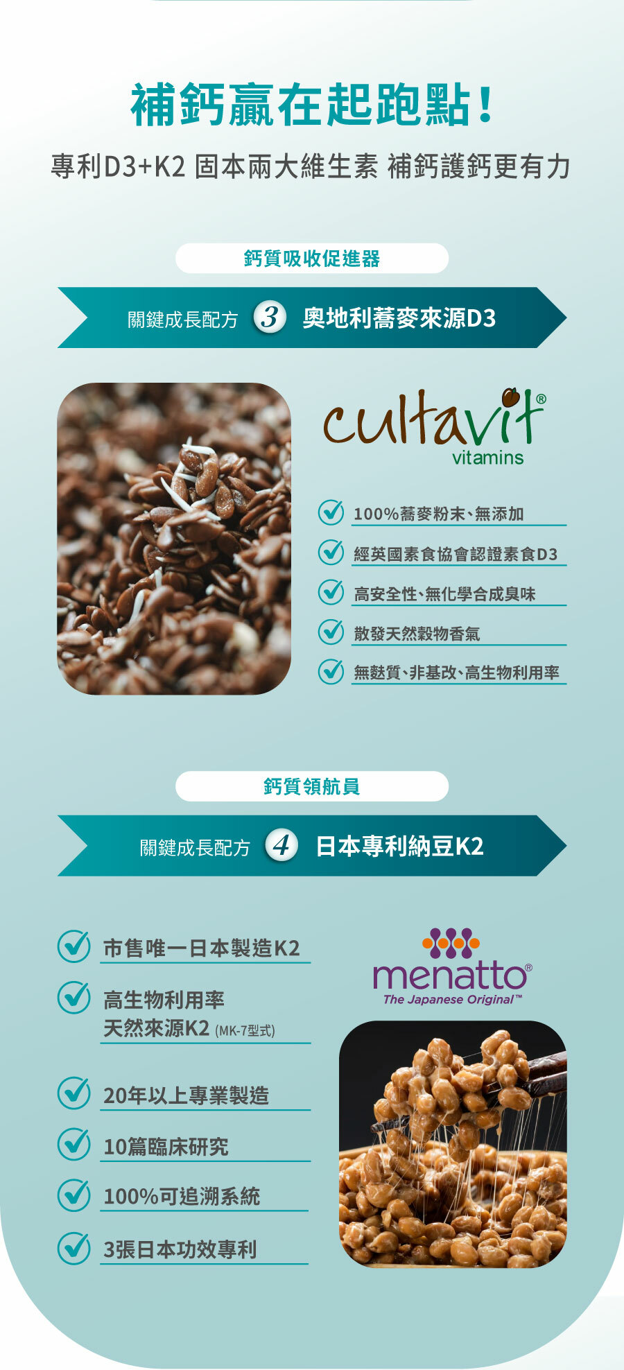 ▪️配方⎮ 專利蕎麥D3+專利納豆K2,補鈣護鈣更有力