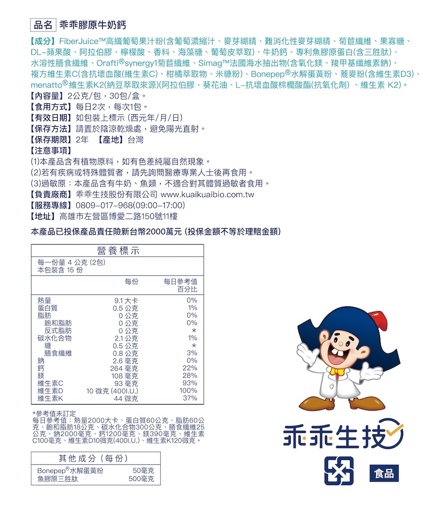 組合含:益生菌系列任選 x 2 + 乖乖膠原牛奶鈣 30包/盒 X 2+元氣蕎麥B群膠囊 30粒/袋 X 2