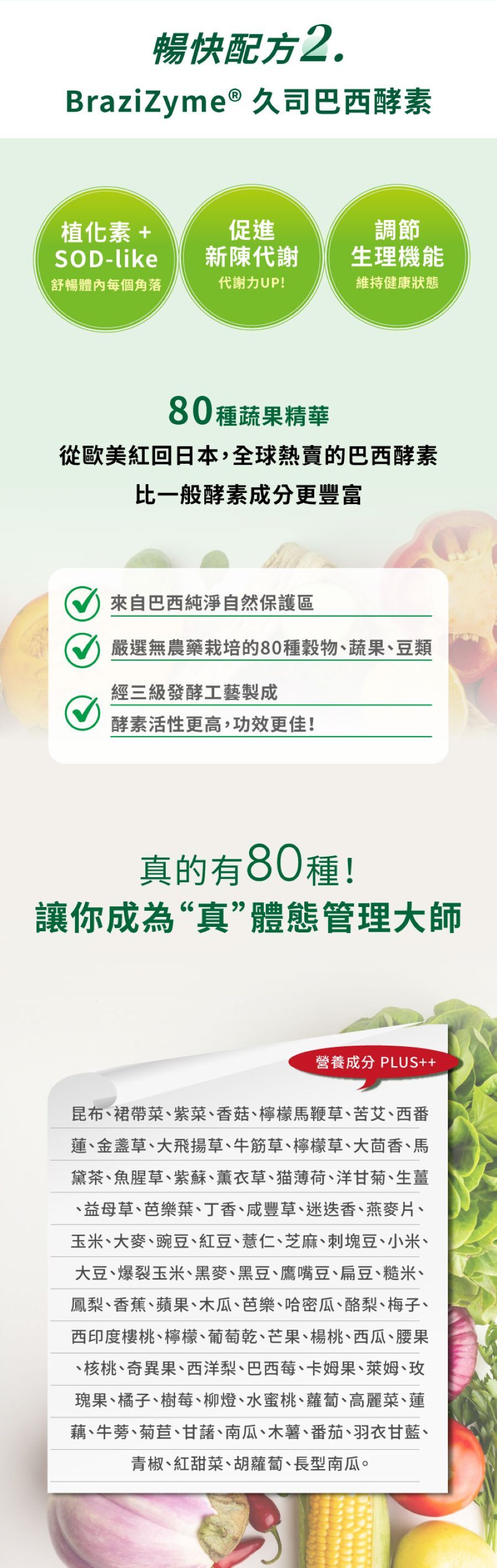 ▪️蔬果⎮ 高達80種發酵精華,營養成分plus