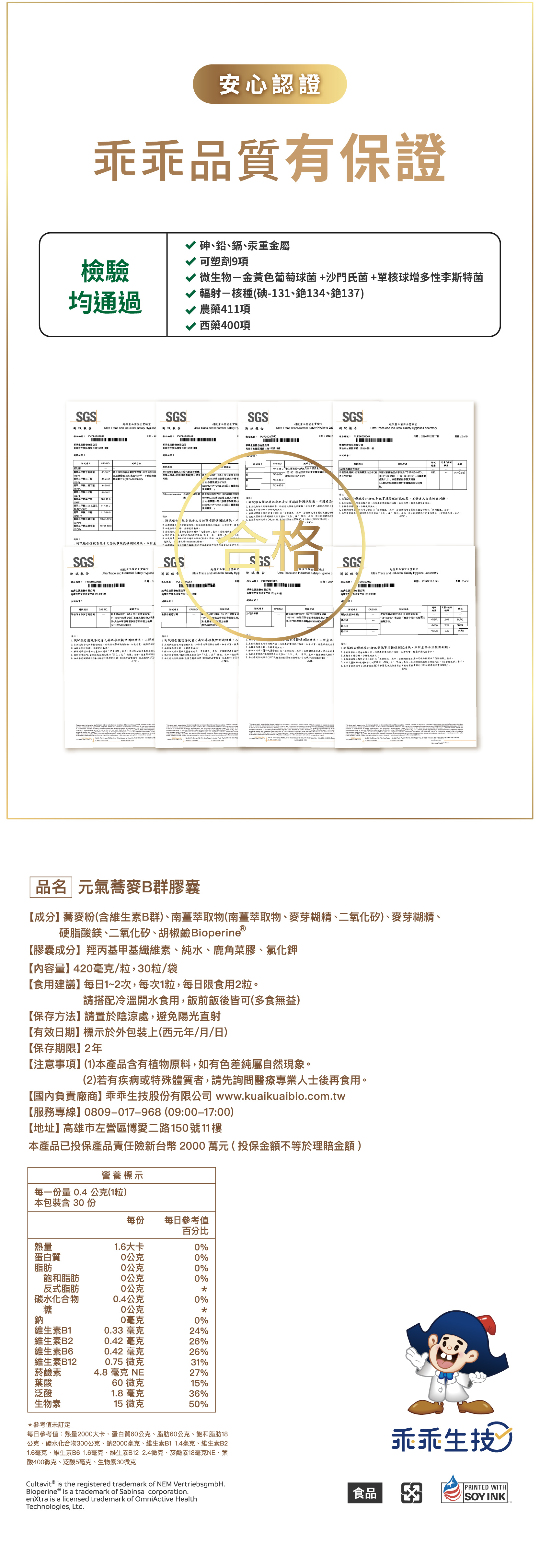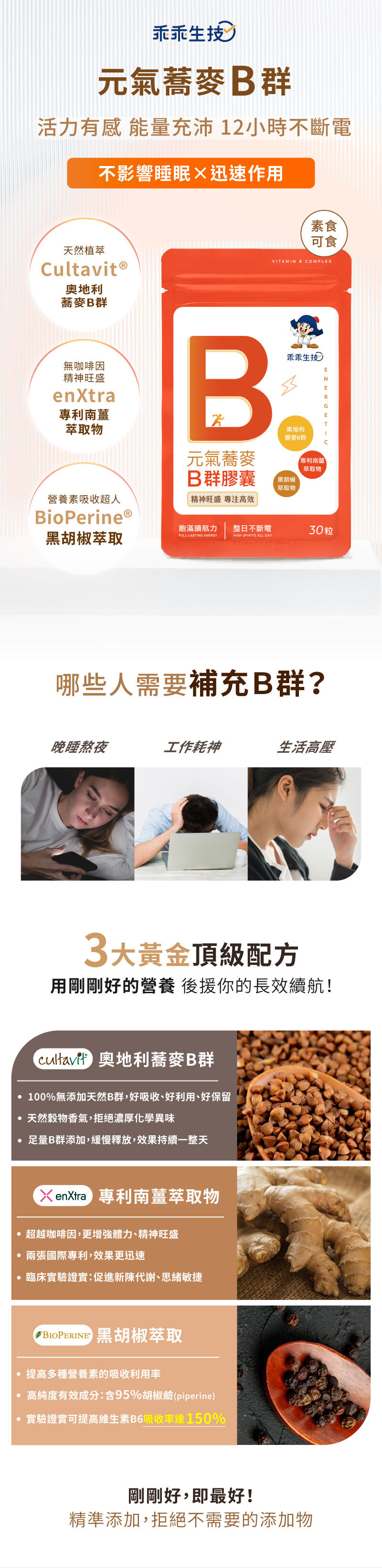 元氣蕎麥B群配方天然溫和,無依賴性,無副作用。